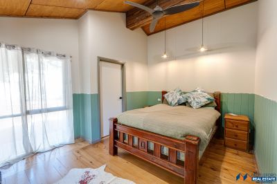 Water security is assured with a 95-meter deep bore, two 7,000-gallon tanks, and an additional two 5,000-gallon rainwater tanks. A seasonal creek meanders through the property, adding to its natural beauty. The property also benefits from a rebuilt shed, perfect for storage or hobbies.