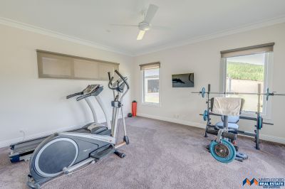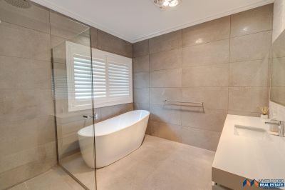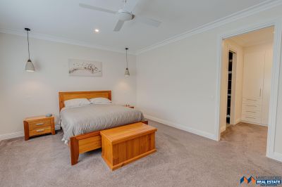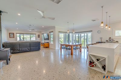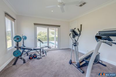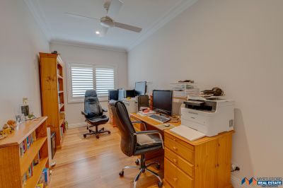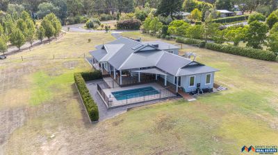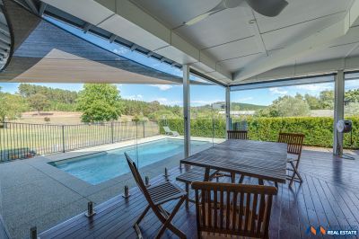 Sustainable features include an 8kW solar panel system (32 panels), double-glazed windows. external amenities include a double garage with electric vehicle charging, a self-cleaning heated in-ground pool, and a three-bay colorbond shed with 3 phase power and mezzanine.