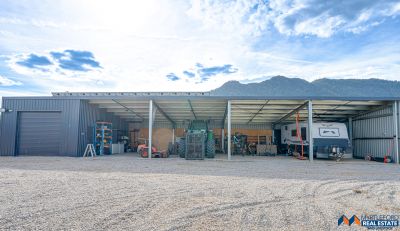 5-bay (one enclosed) concreted shed (9m x 25m) + 10m x 12m farm shed.
