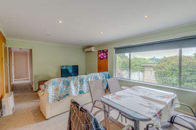 The neat and tidy kitchen contains electric cooking and ample storage, overlooking the dining and second lounge area, with split system air conditioning for year-round comfort, ample space for relaxation and entertaining.